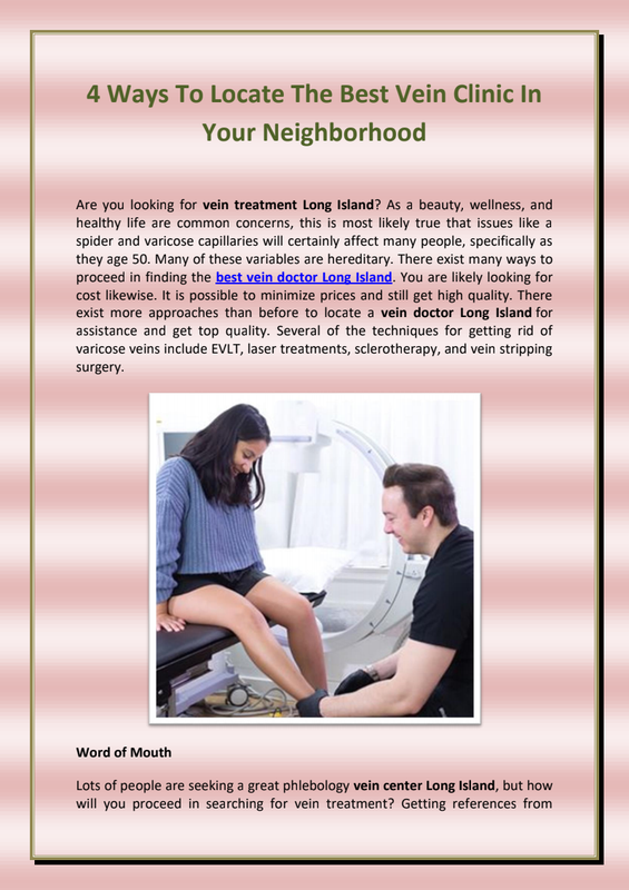 The Web is apparent, although, underused approach to locate a Long Island vein specialist. You might look the Web as lots of special neighborhood and local directory sites will certainly have an affiliation to phlebology websites. Searching the net for "USA vein clinics Long Island" or "vein treatment Long Island" will most likely provide you with several choices. Since elegance, health, longevity are big, the internet is an excellent area to likewise review experiences, credentials, reputation, visit vein specialists that offer vein treatment assistance in your area. With the web, ensure to make use of various search methods, since they likewise tend to supply different web links.